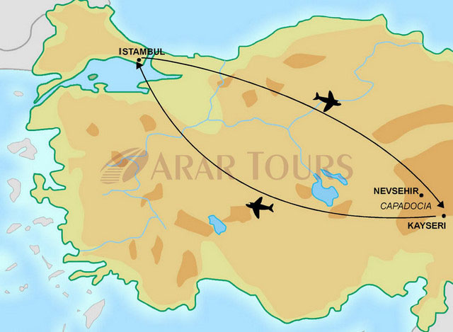 Traslado pela manhã ao aeroporto de Kayseri e vôo com destino a Istambul. Chegada e traslado ao hotel. Tarde livre.